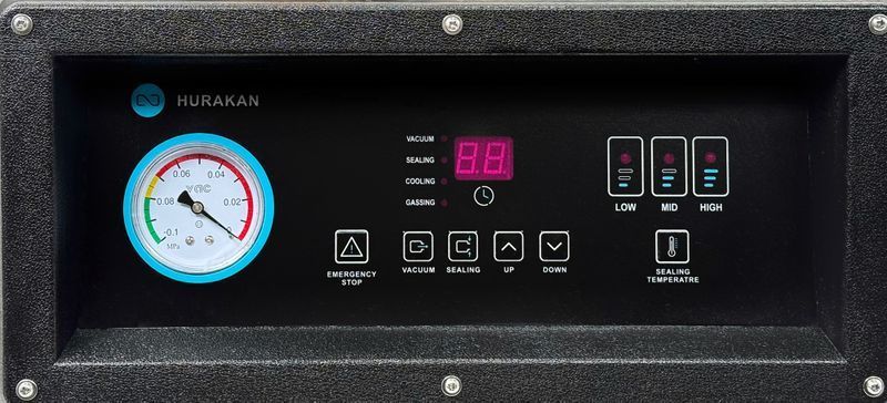 - Tlačidlá vám umožňujú nastaviť stroj presne podľa potreby, ako je tlak vákua, teplota, čas tesnenia a čas chladenia.