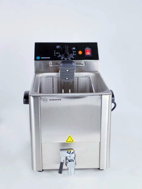 Elektrická fritéza s kohútikom – 1 x 8 L | HKN-FT8N je luxusná fritéza s odnímateľnou nádobou s kohútikom. Nádoba tejto elektrickej fritézy Maxima má kapacitu osem litrov. Stojí stabilne vďaka štyrom gumovým nohám. Táto elektrická fritéza od spoločnosti Maxima je určená pre profesionálne gastronomické prevádzky a má ochranné vykurovacie telesá. Tento model sa ľahko čistí.
